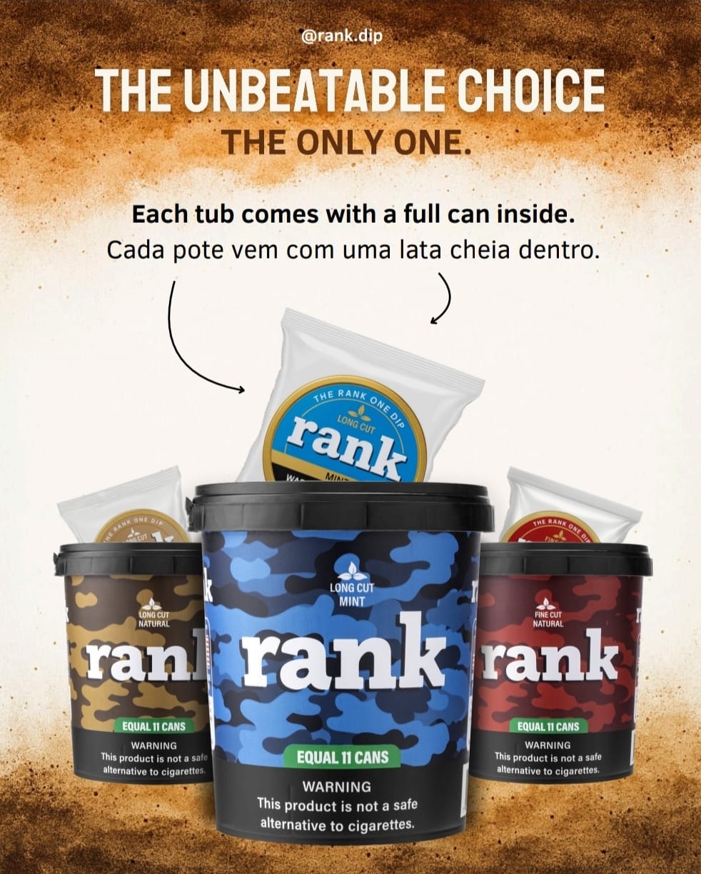 Rank, um fumo de mascar premium, com alma americana e essência brasileira.